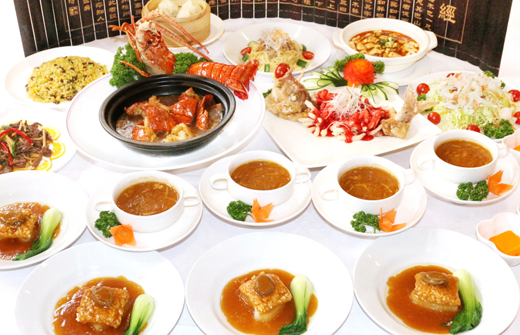 ご注文は3名様より 1.菊華サラダ2.カニミソ入りフカヒレスープ3.菊華魚4.青椒肉絲5.伊勢エビの黒胡椒陶板焼き6.大根とアワビの煮込み7.菊華手作り点心8.麻婆豆腐9.菊華炒飯 or 菊華自家製冷麺10.本日のデザート