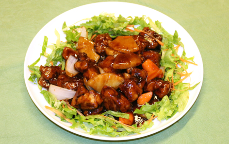 3.パイナプッル入り鶏肉の鎮江黒酢炒め